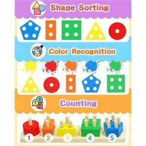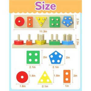 🧿Safe and high-quality toddler toys : We insist on using high quality wood raw materials to provide safe and fun toys for toddlers. The toddler learning toys with a moderate geometric size and smooth edges, can be grasped well by babies while protecting the baby's delicate skin. We also use the water-based paint, the color more vivid, non-toxic, odorless and anti-fade, for your baby safe and happy childhood.