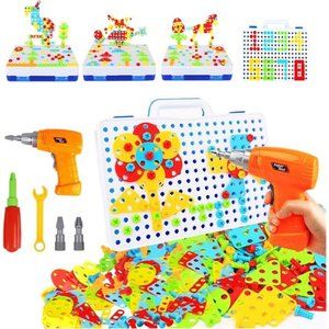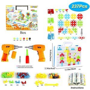 🧿 Let's Build ★ : This electric drill puzzle comes with 237 pieces. Your kids can use the electric drill and screwdriver assembling the plates onto the base grid to build 2D and 3D crafts like lion, truck, butterfly, flowers, bird, helicopter, etc. They can play it to discover, build and learn for hours and hours independently, making playtime challenging and interesting.