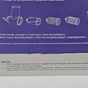 Upgrade your KitchenAid mixer with this versatile attachment that slices and shreds vegetables, fruits, and cheese effortlessly. Comes with multiple blades for varied thickness and a cleaning brush.
