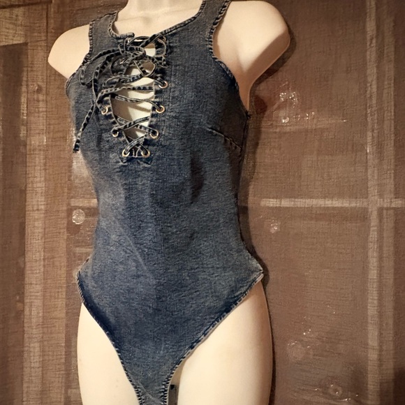 Trac Denim Lace-Up front and zipper back Bodysuit