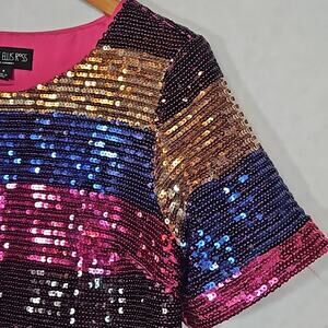 Tracee Ellis Ross for JCP Festive Sequin Striped Short Sleeve Semi Crop Blouse in excellent condition.