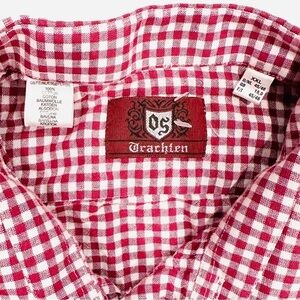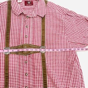 Trachten German Oktoberfest Red Checkered Long Sleeve Button Down Shirt w/ Lederhosen Detail - EUC - size XXL