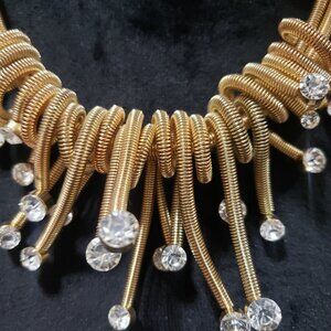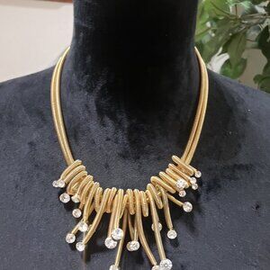 Traci Lynn Womens Unwind Gold Tone Rhinestone Statement Fashion Necklace