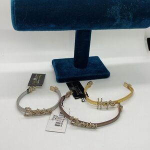 Set of three bracelets with 'Believe' and 'Dream' charms. Features gold and silver tones with sparkling accents.