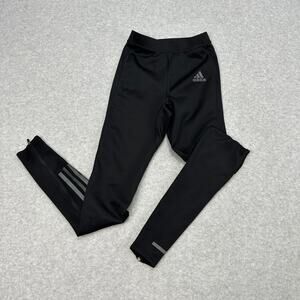 Stay cool and supported in these Adidas AeroReady Running Leggings, Women’s XS. Designed in black, they feature full-length coverage, pull-on styling, ankle zips, and moisture-wicking AeroReady fabric to keep you dry on the move. Built for performance with a streamlined fit.