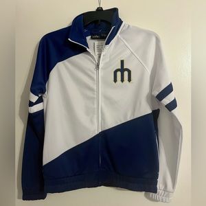 Show stopper track jacket. Bright royal blue color with hints of yellow and gold. Very stylish.
