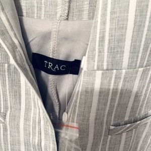 *Brand new *track jumpsuit/pantsuit *grey and white striped *never worn * one piece, floor length *sleveless *this is SO cute, I’m 5’9 and it’s about one or two inches too short for me, otherwise it fits perfectly! *size L (8)