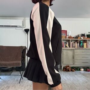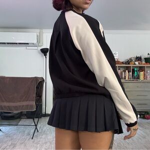 Simple classic black and creme track jacket from Mossimo. Black and creme contrast stripes down the sleeves and elastic cropped waist