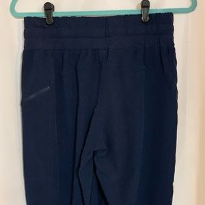 Navy blue micr fiber track pants with wise elastic cuff. Wise waist band with pockets. Small. Not snags or stains. Never wore.