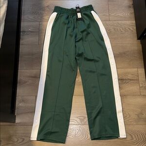 Size small, pockets, buttons snap on the sides, new with tags, thick material. I am 5’5” and these were a little short on me so please keep in mind.