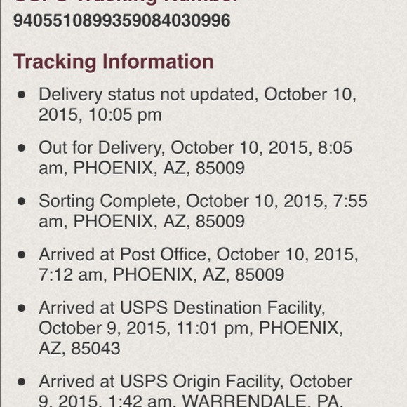 @jasminehull usps just updated the info it says it's in my mail box i will check in the am and give you a rating. Thank you