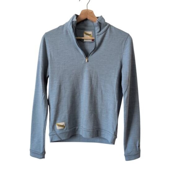 Tracksmith New England Run Merino Wool Quarter Zip Long Sleeve Running Blue XS