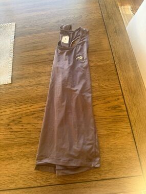 Lightweight racerback tank. Smooth performance fabric. Small embroidered logo at chest. Soft muted mauve-purple color. Versatile for training or layering.