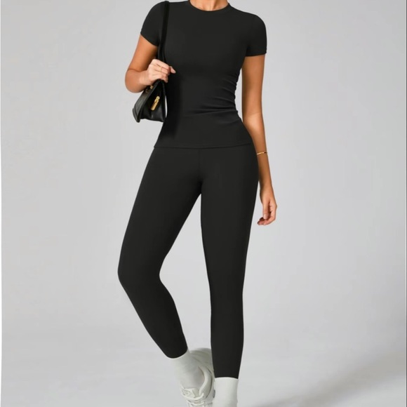 Solid round neck Tee & High Waisted leggings