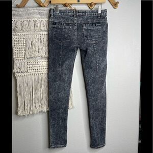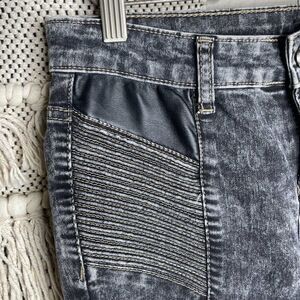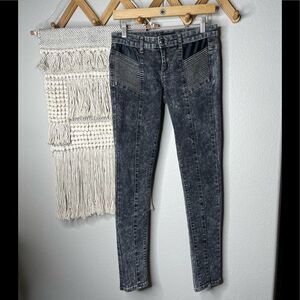 Tractor Black Acid Wash Moto Skinny Jeans size 5. Mid rise. Faux leather trim on pockets. Excellent condition, like new. Stretchy