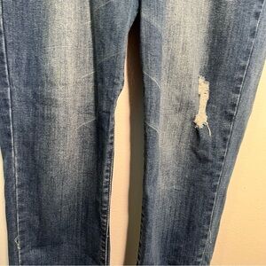 Great condition, minor wear. Tractr Blu. Skinny Jean. Medium Wash. distressed. Raw hem. Style B97960-T4MN. Size 30. Stretch 63% cotton, 14% rayon, 11% polyester, 2% spandex. Waist 15.5” Inseam 26.5” Front Rise 10”. All measurements are approximate and taken lying flat. Smoke free home. No trades, offers welcome.