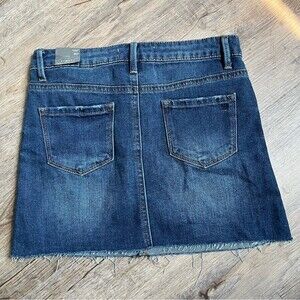 Tractr Girls Lisa Distressed Mini Skirt Denim Raw Hem Dark Wash Slim Size XL