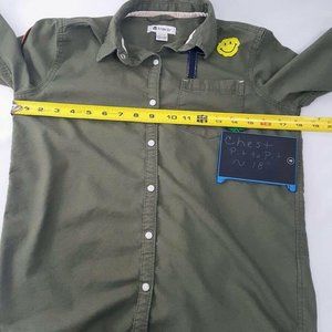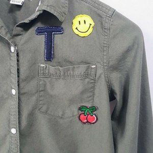 Tractr Girl's Shirt Size L 14-16 Pearl Snap Olive Green W Patches Rayon Cotton