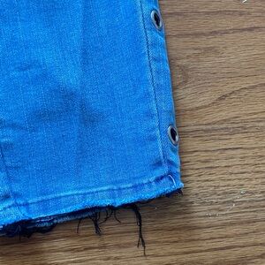Chic light blue jeans with stylish side eyelets. Ankle length for a modern fit. Perfect for casual wear.