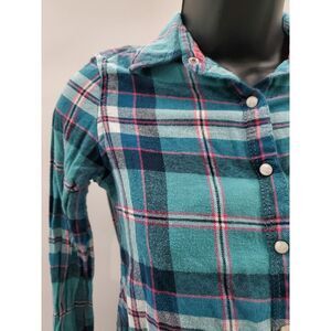 Tractr Long Sleeve Button Up Shirt Youth Medium Blue Plaid Pocket Pearl Snap