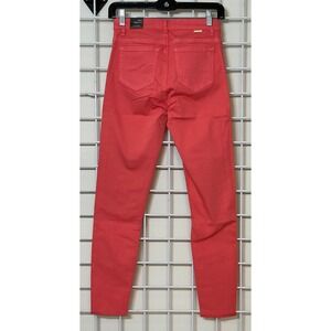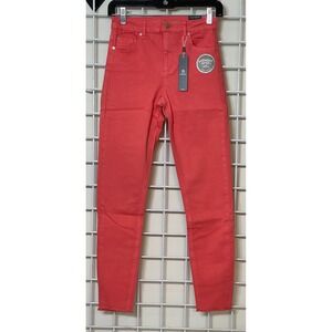Tractr Mona High Rise Crop Coral Red Raw Hem Garment Dyed Jeans Size 2/26