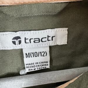 Tractr NWT Army Green Long Sleeve Snap Up Shirt Patches Cotton Girls Size 10 12