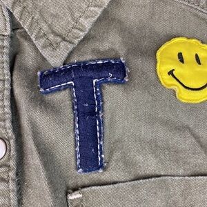 This is a fun and playful casual shirt. There are signs of wear. Please see photos and ask any questions. There are no holes, stains or smells. Minor threads visible and pilling on the patches. 😊