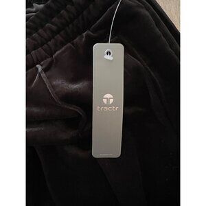 Tractr Womens Black Velvet Jogger Pants Size 14/32 Elastic Waist Pockets Lounge