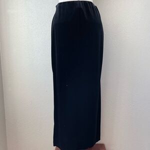 Beautiful black velour style closet essential featuring a comfortable and flattering stretch fit. It measures 14 inches at the stretch fit waist and is 38 inches in length.