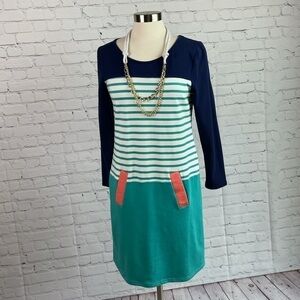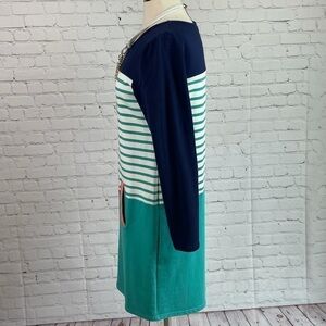 Tracy Negoshian French Terry Striped/Color Block Dress Medium