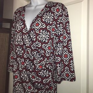 Tracy Negoshian Sz L Dress Geo Design-Wrapped Front w 3/4 sleeves