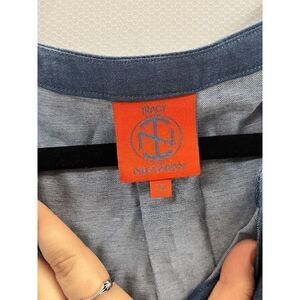 Tracy Negoshian Women's Chambray Blue Trapeze Elbow Puff Sleeve Dress Size Small
