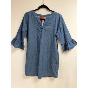 Tracy Negoshian Women's Chambray Blue Trapeze Elbow Puff Sleeve Dress Size Small