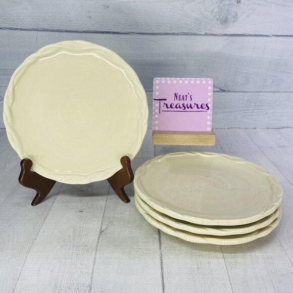 Tracy OCTAVIA HILL Solid Cream Twisted Rope Edge Ceramic 8" Salad Plates Set 4