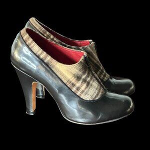 Tracy Porter 8 Booties Patent Leather Gray Plaid Zip Fabric 4" Pumps Shoes Heels