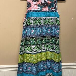 Tracy Porter Bright Floral Sleeveless Dress Flax Blend Size 4-6