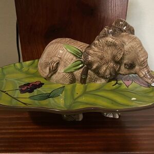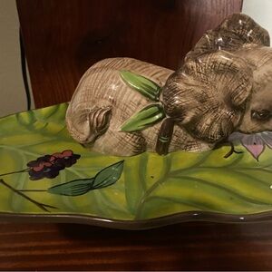 Tracy Porter "Lotus Collection" Elephant Figurine Ceramic Server Hand painted
