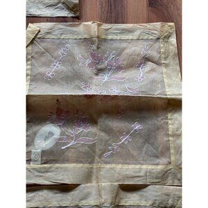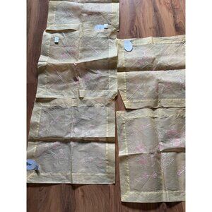 Tracy Poter Yellow Napkins With Pink Floral Embroidery Pirouette Set Of 5 NWT