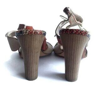 Tracy Reese Annie Snakeskin Block Wooden Chunky Heel Lace Up Strappy Sandal 39.5