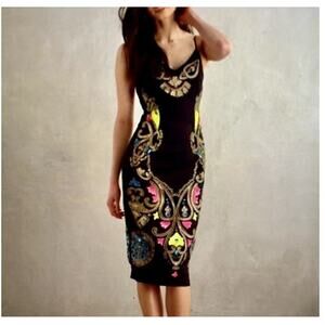 Tracy Reese Anthropologie Embroidered Emele Linen Blend Dress Size 2