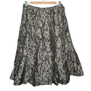 Tracy Reese Black Metallic Floral Print Taffeta Tulle Sz 8 Party Cocktail Event