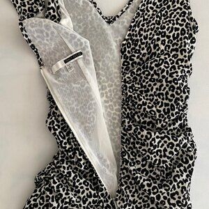 Tracy Reese Black & White Silk Cheetah Print Midi Dress