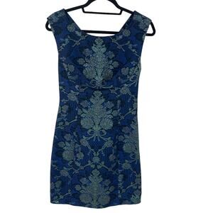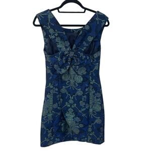 Tracy Reese Blue Metallic Jacquard Bow Back Charmed By You Mini Dress Womens 2