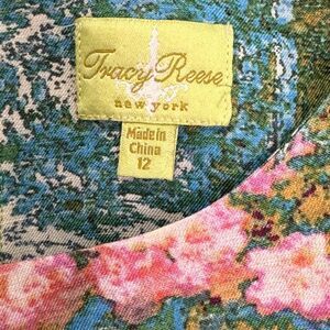 Tracy Reese Dress Size 12 Impressionist Monet Floral Fit Flare Silk Linen Lined