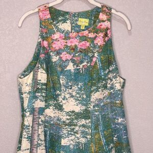 Tracy Reese Dress 12 Impressionist Floral Monet Sleeveless Fit Flare