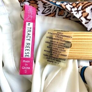 Tracy Reese Dress White Multi Cotton Floral Sheath Front Ties Plenty (S)