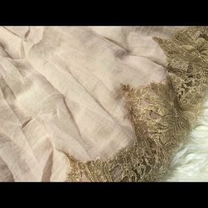 This is a beautiful and delicate Tracy Reese piece that has been converted from a dress to a skirtThe top piece became too small thus the transformationNow the bottoms are also too small so I'm letting this gorgeous rare thing goThe silk band at the waist was addedIt is an iridescent color on both the soft gold Italian lace detail and the woven silk blend in a pale pink champagne hue襤Can be worn at hips or high waist depending on your size