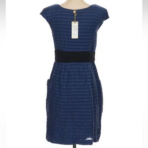 Tracy Reese Frock! Blue & Black 100% Silk Front Zipper Dress Size 4 Small NWT