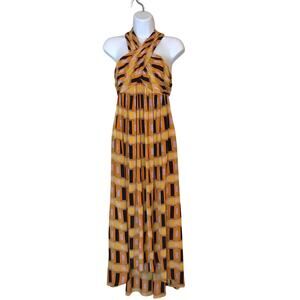 Tracy Reese Geometric Print Halter Hi Low Midi Dress