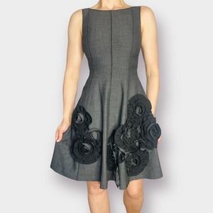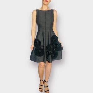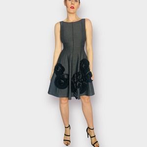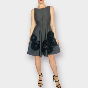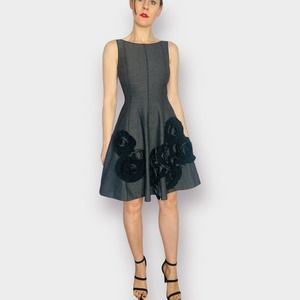 Fit and flare style cocktail dress. Back zip closure with low back. Dress has stretch and is fitted in bodice.